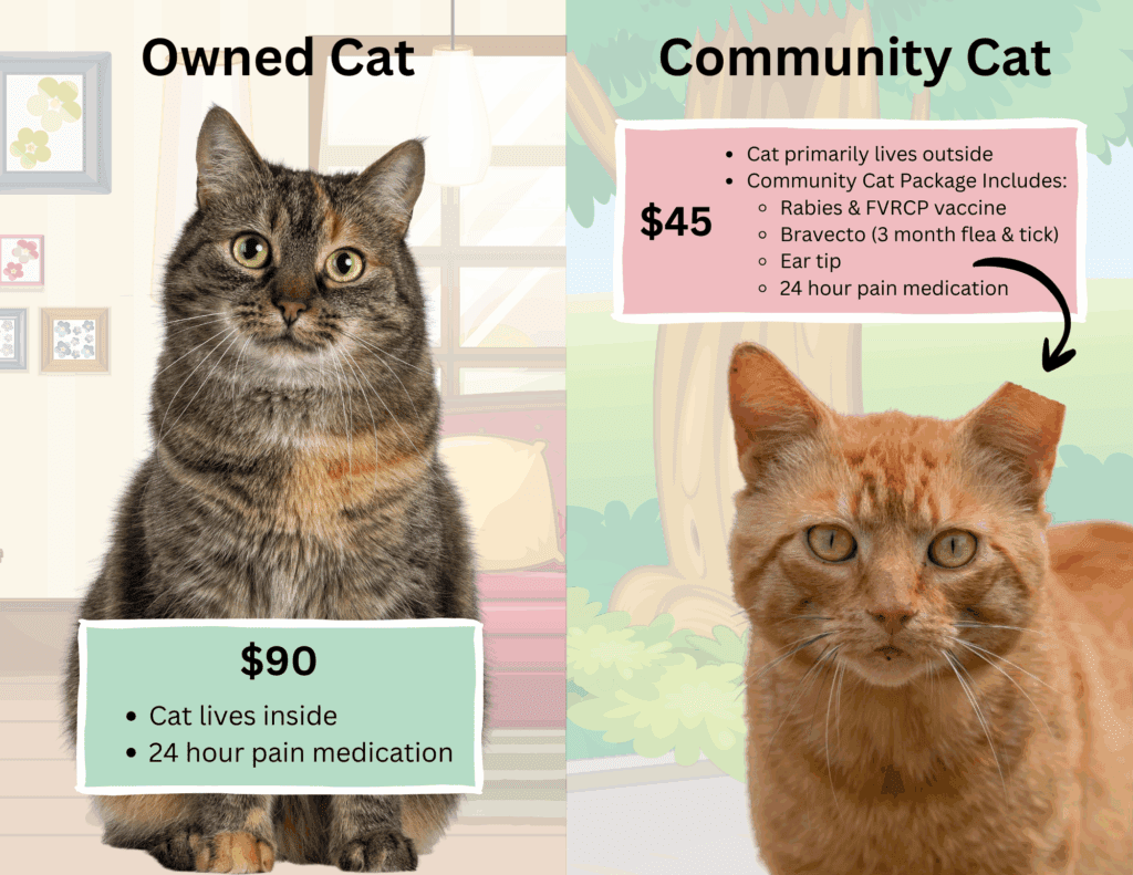 No community cat surgeries will be performed during the months of January and February. Surgeries will resume on March 2, 2026. Check back towards the end of February to get your community cats scheduled!